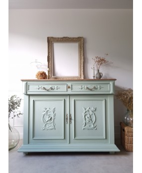 520,00 €Buffet en sapin rénové dans la teinte " sage green" de chez Little Greene.