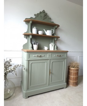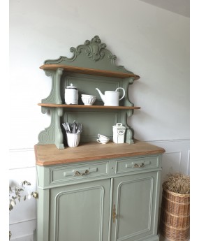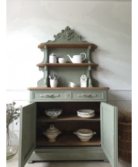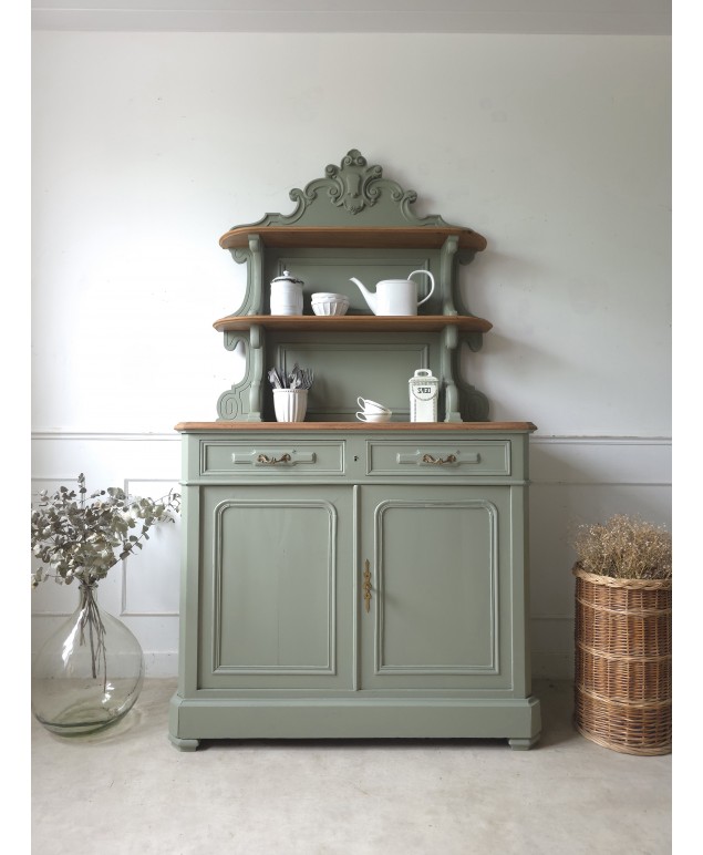 Ancien buffet rénové dans le vert "Treron No.292 " de chez Farrow & Ball.