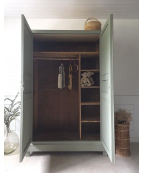 Ancienne armoire rénovée dans la teinte "Treron No.292 " de chez Farrow & Ball.