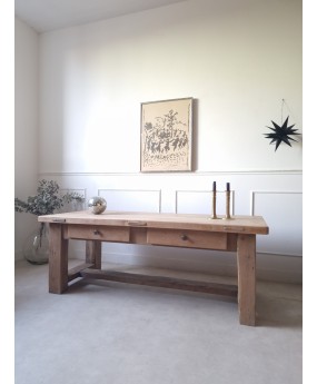 Ancienne table basse de ferme en chêne massif.